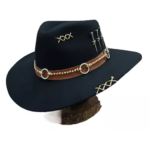 CHAPÉU 3 CRAVOS PRETO ABA 8,5 C/ BANDA DE ARGOLA TAM P