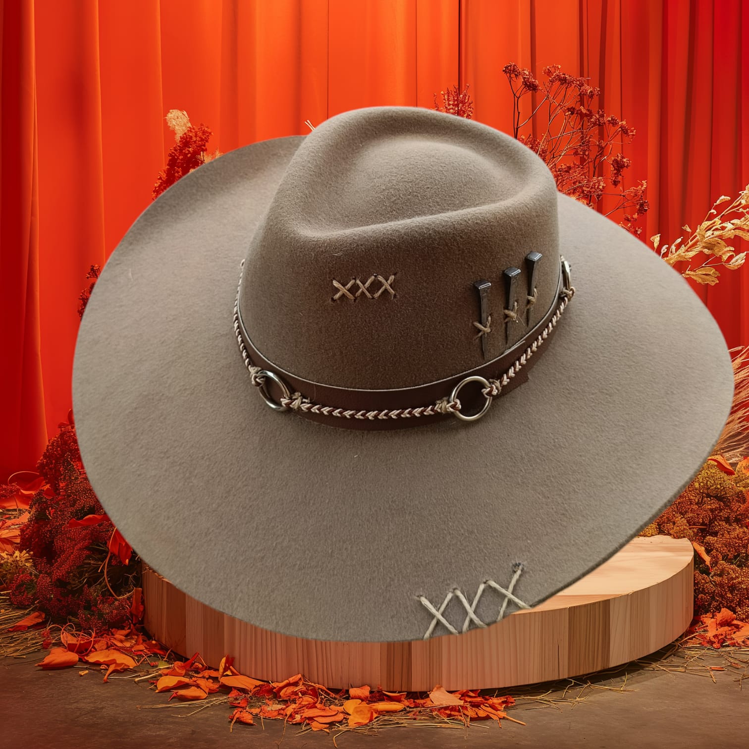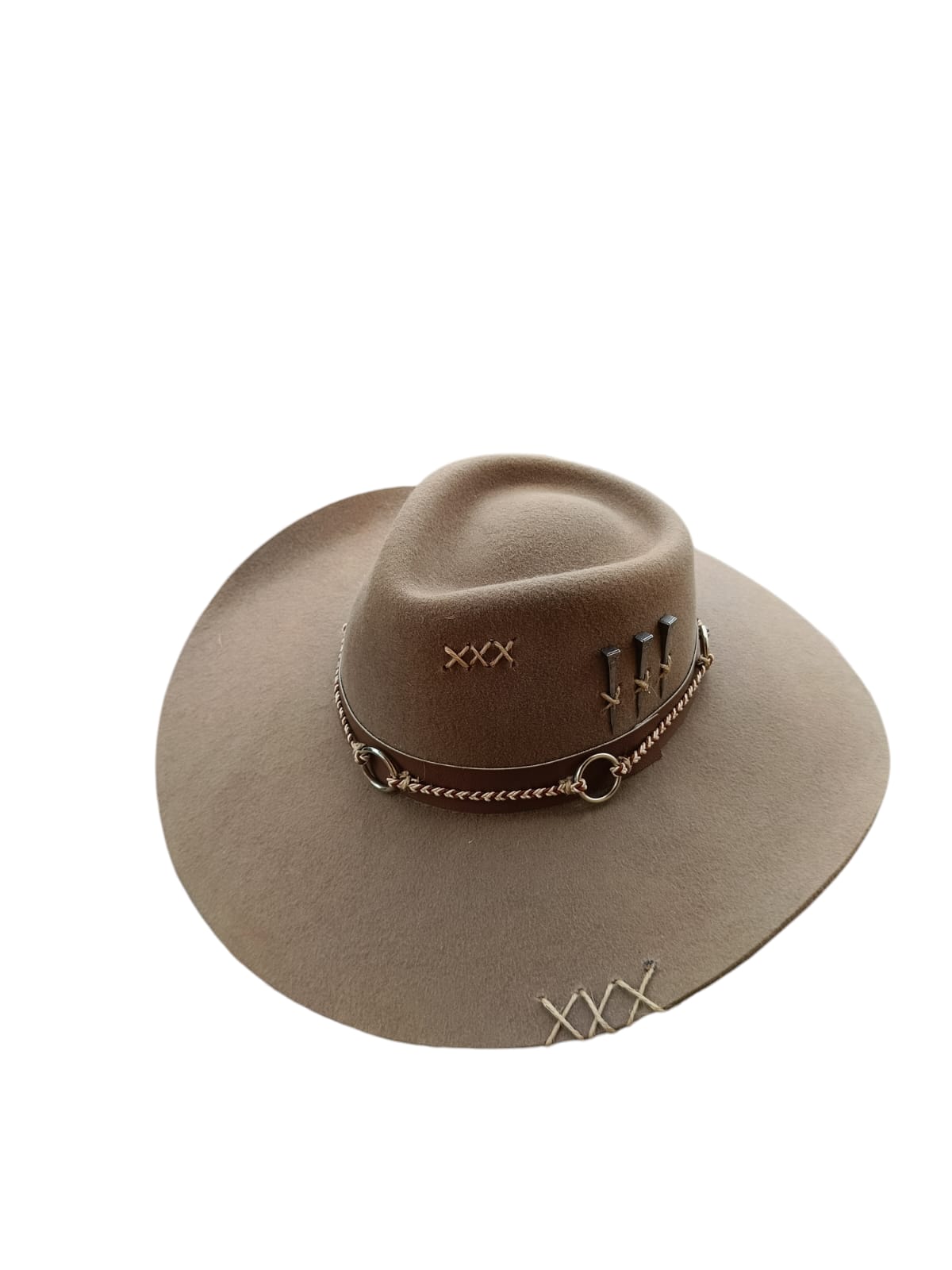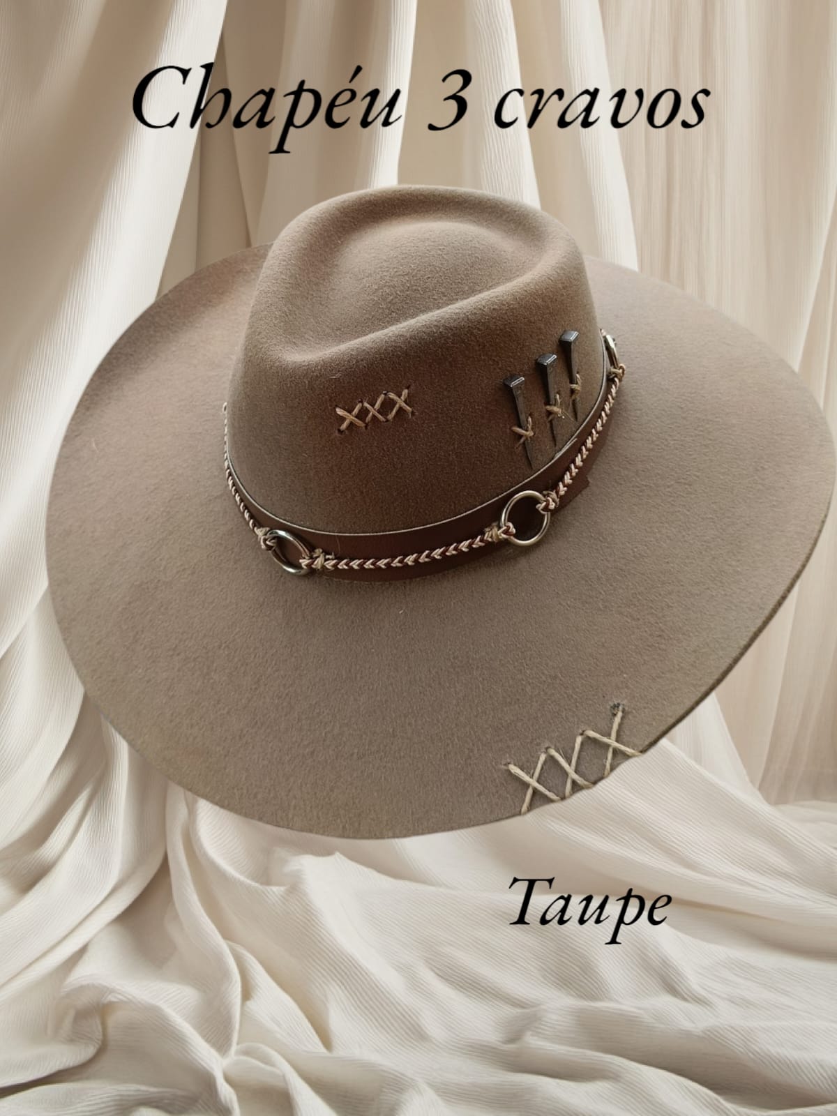 CHAPÉU 3 CRAVOS TAUPE ABA 10 C/ BANDA DE ARGOLA TAM G
