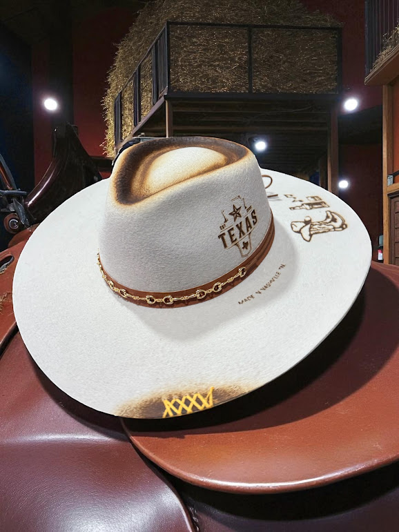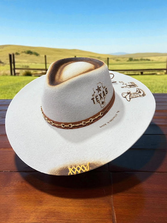 • CHAPEU GELO ABA 10 PERSONALIZADO A LASER TEXAS E CASCA DE BALA TAM P