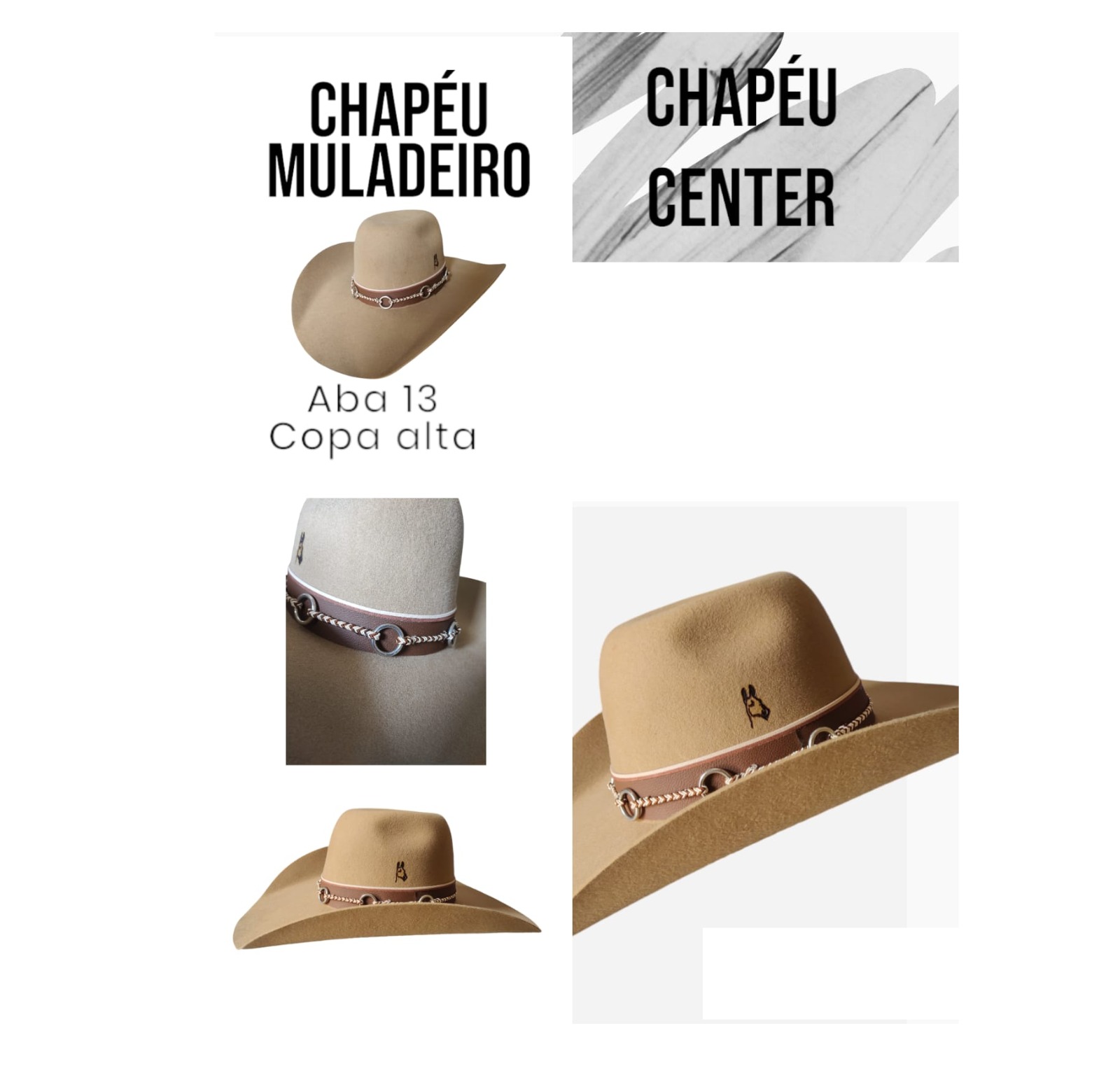• CHAPÉU MULADEIRO 3 CRAVOS MARROM PERSONALIZADO ABA GRANDE TAM 62