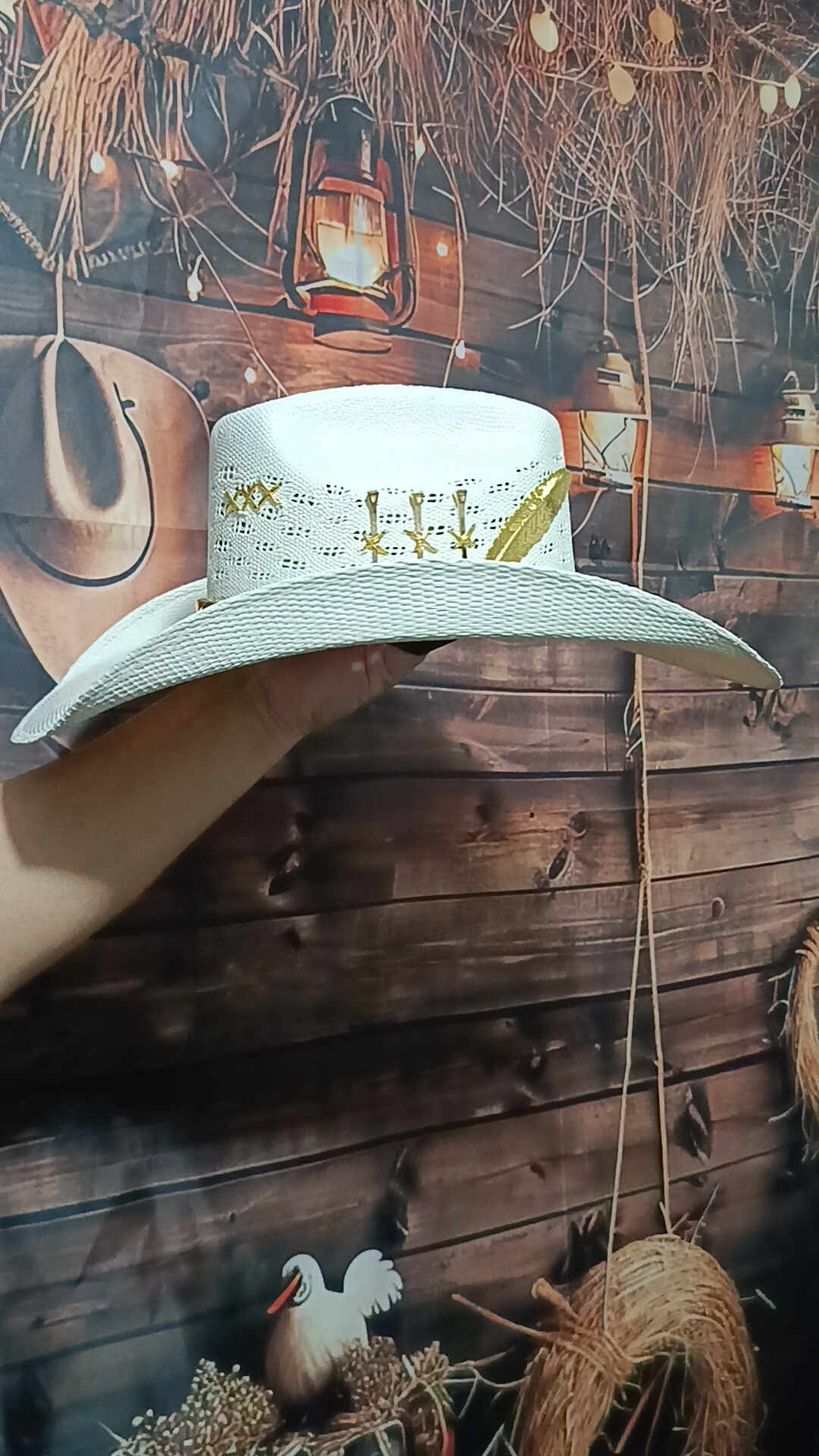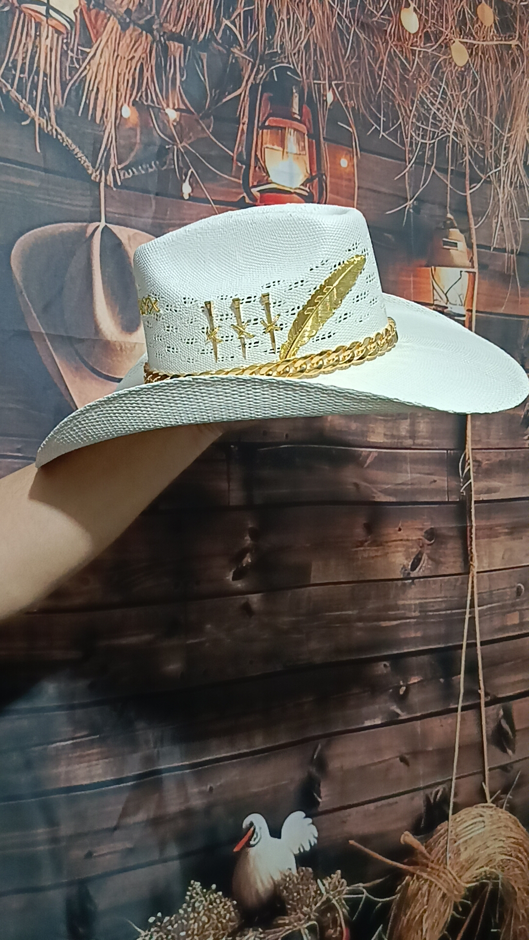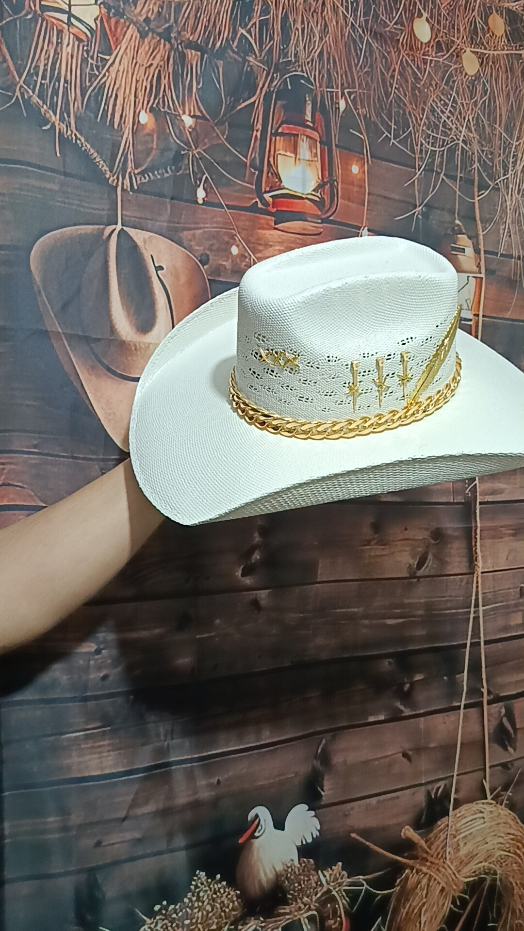 Chapéu Personalizado 3 Cravos Corrente Aba 12 Palha Sintética Branco G