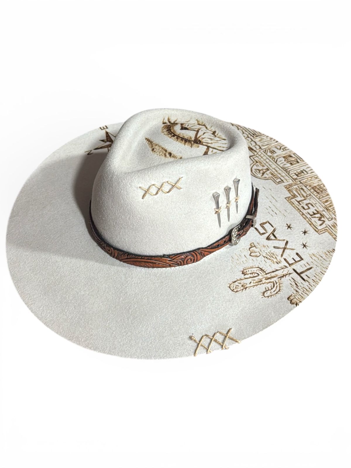 • CHAPEU GELO ABA 10 PERSONALIZADO A LASER TEXAS E CASCA DE BALA TAM M