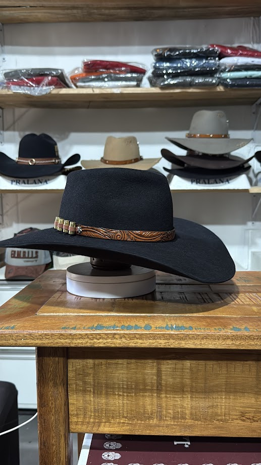 CHAPÉU PRALANA 30X PRETO ABA 13 PERSONALIZADO CASCA DE BALA TAM 60