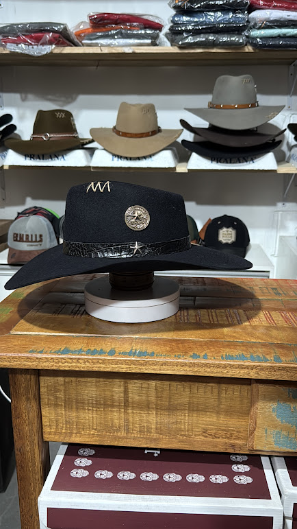 CHAPEU PRALANA 5X CAMPO ABA 10 PRETO CASCA DE BALA E CARTA DE BARALHO M