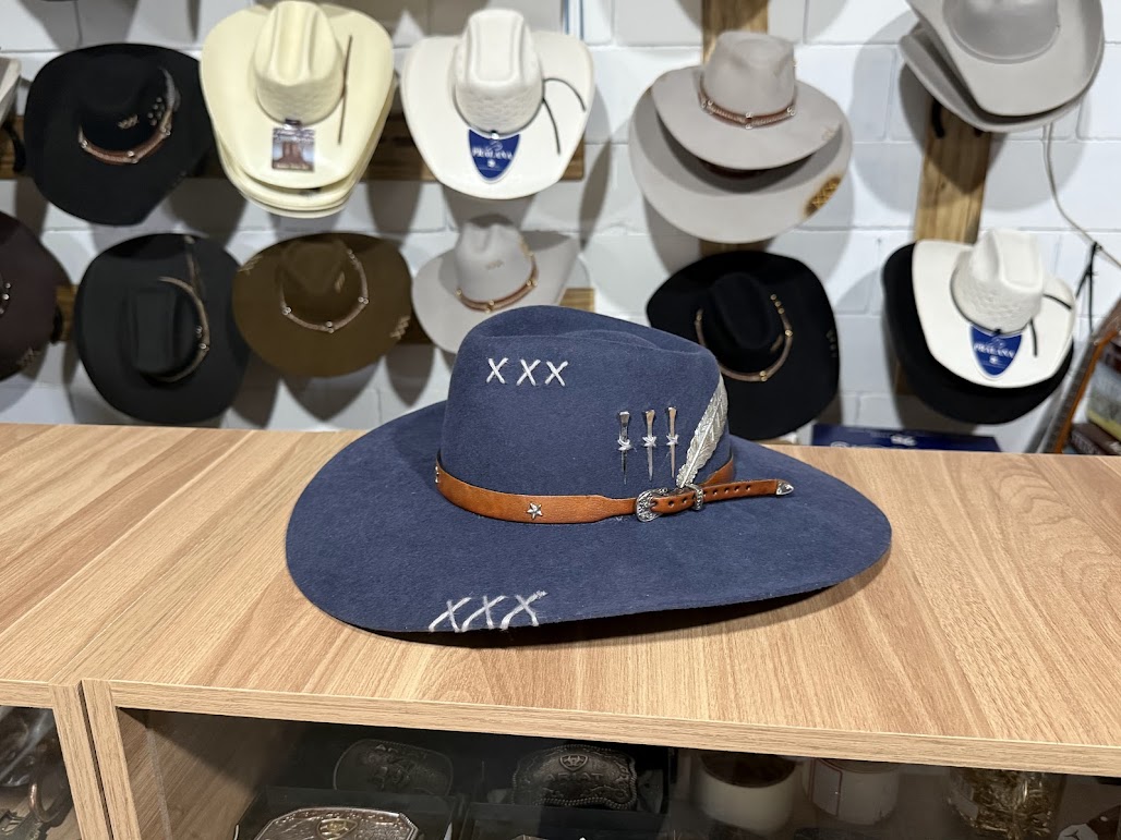 CHAPÉU PRALANA 5X CAMPO AZUL ABA 10 PERSONALIZADO 3 CRAVOS CASCA DE BALA P