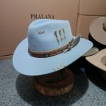 Chapeu Personalizado 3 Cravos De Ferradura Aba 7.5 Azul Pastelo Original Pralana P