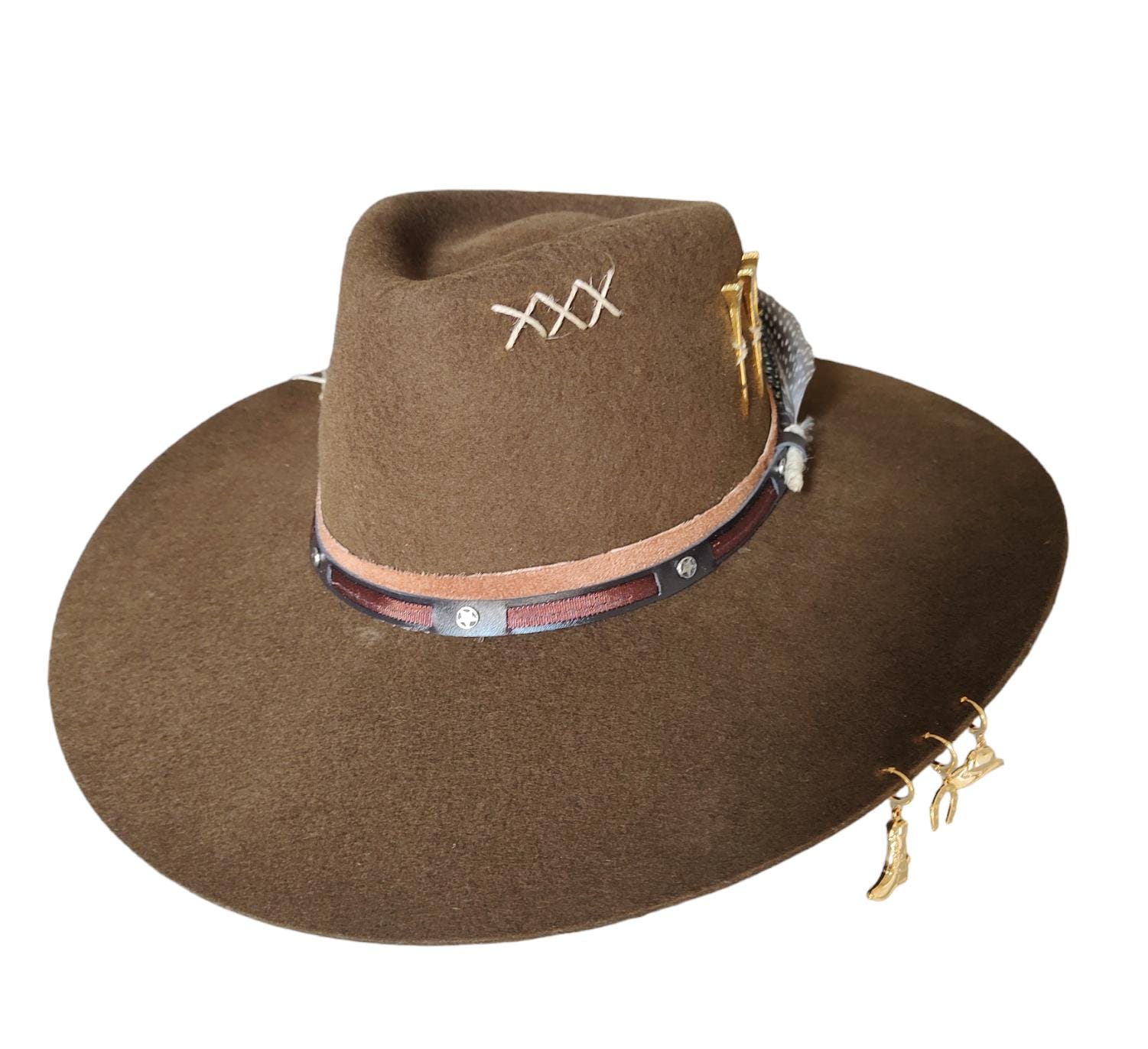 CHAPÉU PRALANA 5X CAMPO MARROM ABA 10 3 CRAVOS DOURADO FEMININO GG