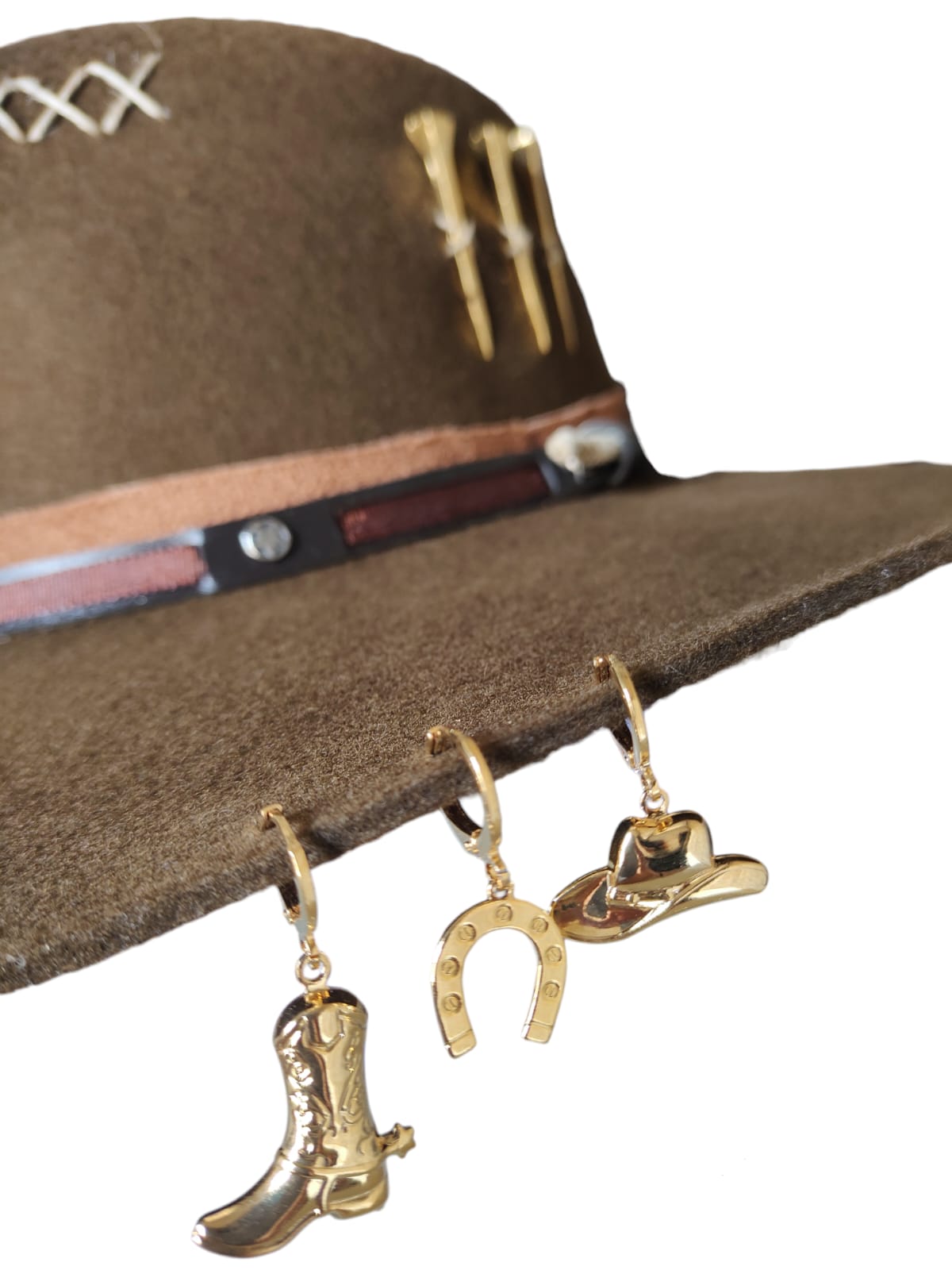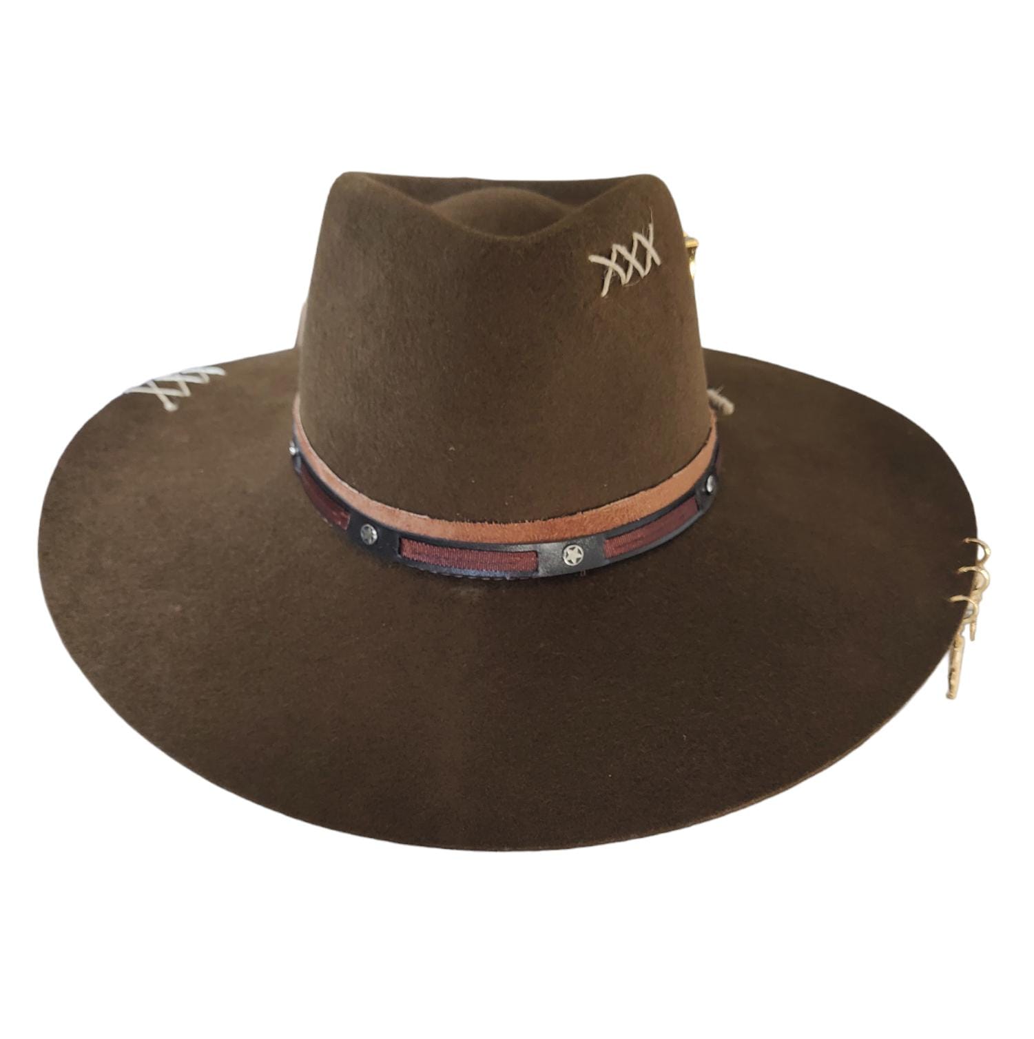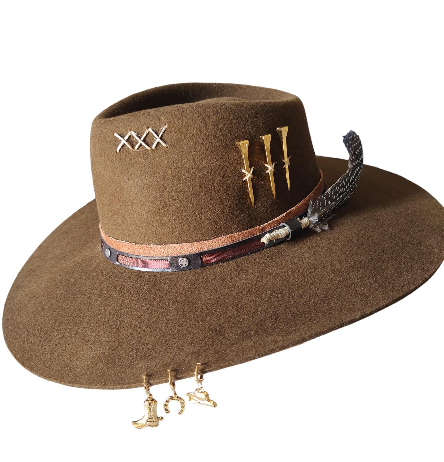CHAPÉU PRALANA 5X CAMPO MARROM ABA 10 3 CRAVOS DOURADO FEMININO G